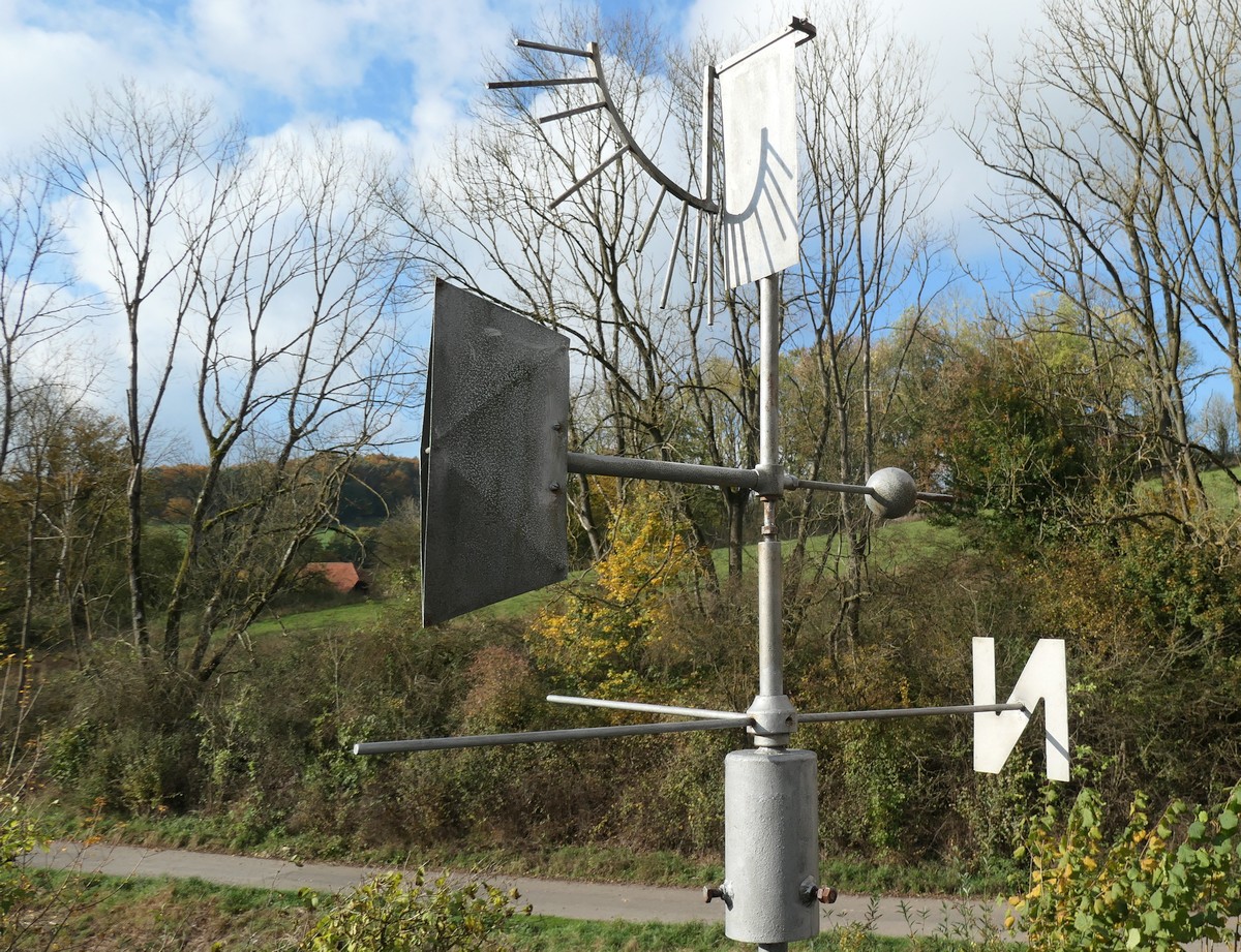 (nach Wild) Die WILD'sche Windfahne findet fast nur noch im Klimadienst Verwendung. Es handelt sich hier um ein sehr einfaches Messgerät für die Windrichtung und Windstärke, das aus einer rechteckigen Blechtafel besteht, die durch eine Windfahne immer senkrecht zum Wind gestellt wird. Je nach der Windgeschwindigkeit wird die Blechtafel vom Winddruck verschieden hoch gehoben. Sie zeigt an den Stiftmarken des Gradbogens die jeweilige Windstärke an. Die Bestimmung der Windrichtung erfolgt durch Vergleich der Stellung der Windfahne mit dem die vier Haupthimmelsrichtungen anzeigenden Richtkreuz, bei welchem die Nordrichtung durch ein "N" gekennzeichnet ist. (Ostrichtung fehlt auf dem Bild) Zwischen den Gradbogenmarken, der Windgeschwindigkeit in m/s und der Beaufortskala bestehen folgende Beziehungen: (Auszug aus "Leitfaden für die Ausbildung im Deutschen Wetterdienst" 1969)